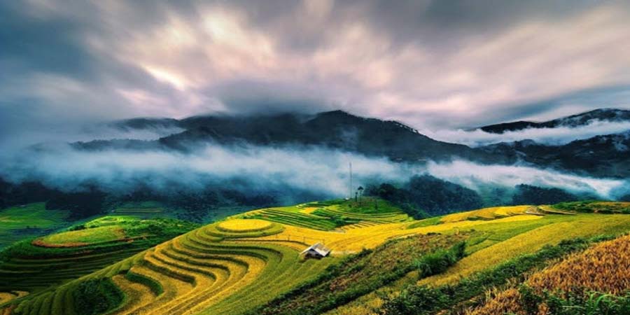 Vào thời điểm này, khắp nơi đã trải dài, vàng rực một màu lúa. Trên các triền đồi chập chùng nối tiếp nhau đến ngút tầm mắt, lúa uốn câu, trĩu nặng, phủ kín một màu vàng óng ả, thấp thoáng giữa cánh đồng là những căn chòi gỗ nhỏ canh lúa, tạo thành một bức tranh phong cảnh đẹp tuyệt vời.