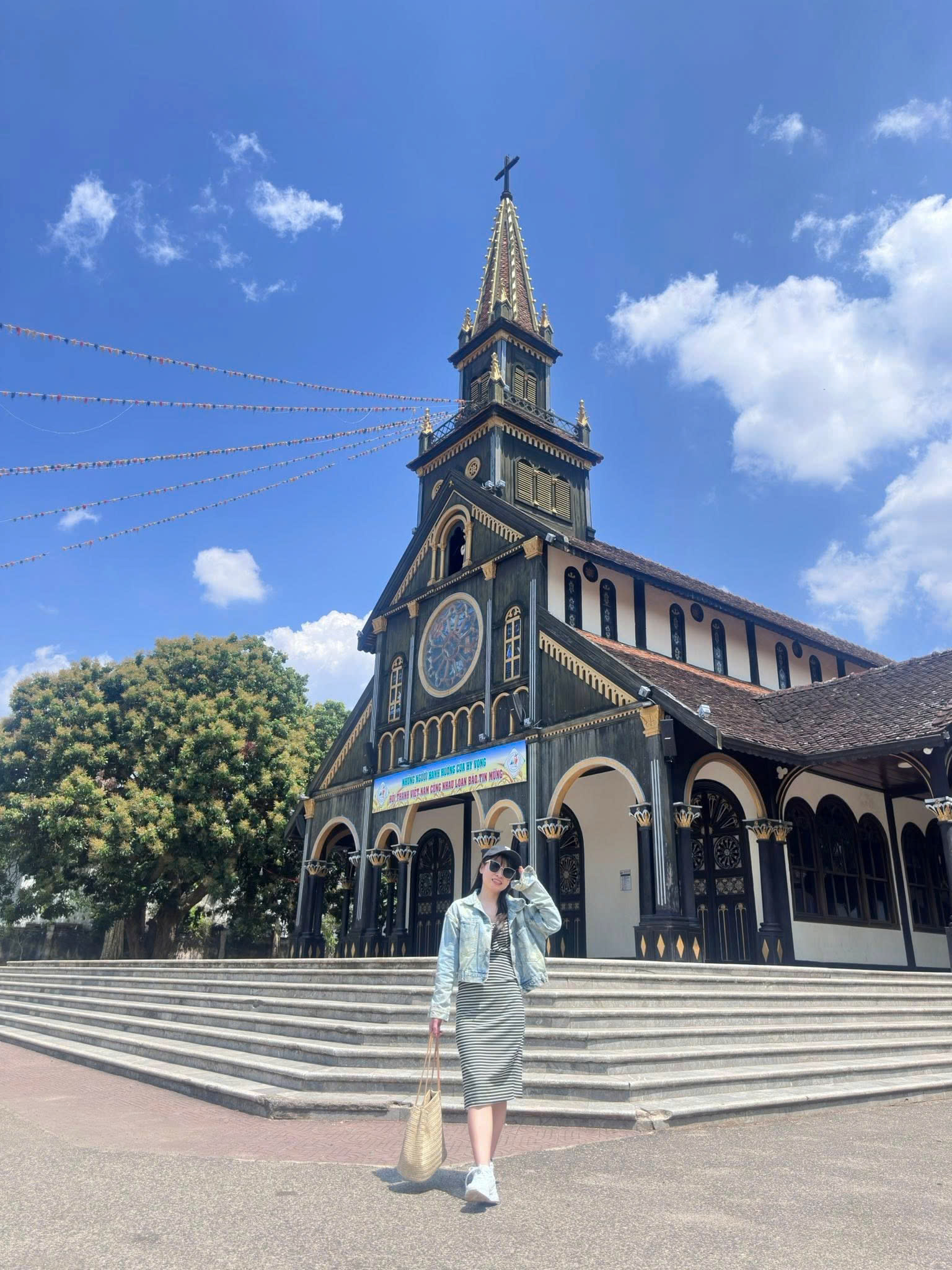 + Nhà thờ Chánh Tòa Kon Tum được xây dựng từ năm 1913 còn được biết đến với tên gọi Nhà thờ Gỗ. Công trình nổi bật nhờ sự kết hợp hài hòa giữa kiến trúc Gothic phương Tây và kiểu dáng nhà sàn truyền thống của người Ba Na, tạo nên dấu ấn văn hóa đặc sắc của vùng Tây Nguyên.