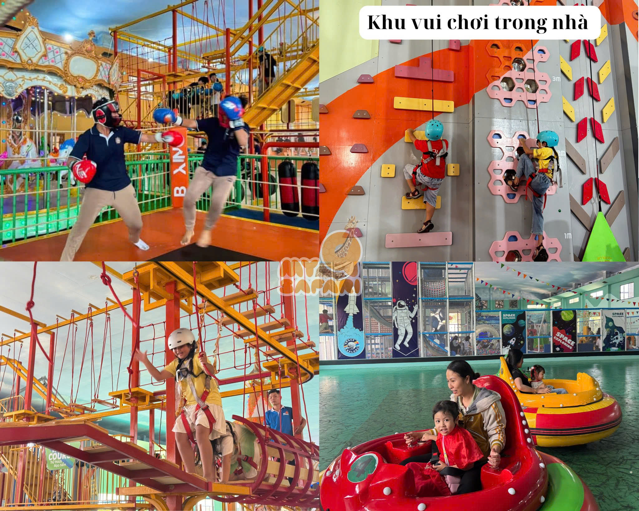 + Khu trò chơi giải trí: Không chỉ dừng lại ở vườn thú và công viên nước, Mỹ Quỳnh Safari còn là thiên đường giải trí với hàng loạt trò chơi dành cho mọi lứa tuổi. Tùy sở thích, bạn có thể trải nghiệm từ những trò nhẹ nhàng như vòng xoay ngựa gỗ, đu quay máy bay, đến các trò mang lại cảm giác mạnh như tháp rơi tự do, tàu lượn siêu tốc, thảm bay hai chiều, trượt phao hay đu dây Zipline băng qua không trung. Mỗi trò chơi đều mang lại một cung bậc cảm xúc khác nhau, từ hồi hộp, phấn khích đến vỡ òa trong tiếng cười.