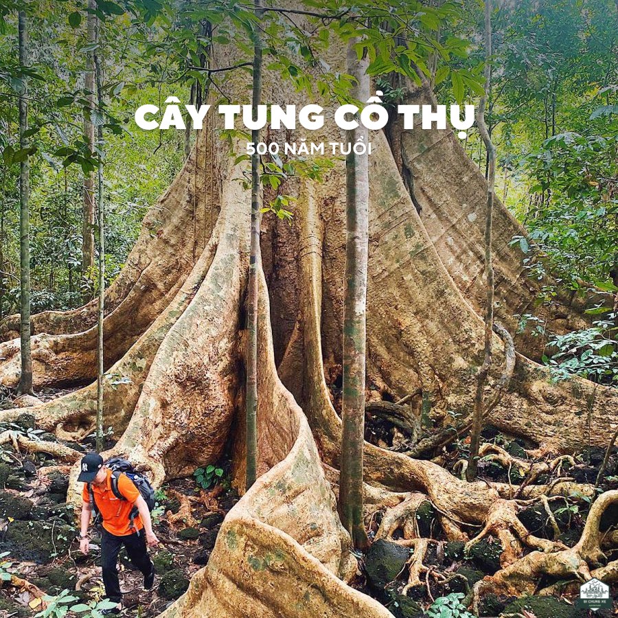 08h00: Hướng dẫn viên sẽ đồng hành cùng du khách bắt đầu tham quan, khám phá rừng quá tuyến cây Tung cổ thụ, gõ Bác Đồng, cây đa Lộc Giao và cây si Trăm Thân. Khi đến đây du khách sẽ có cơ hội tận mắt chứng kiến những cây cổ thụ uy nghi đã tồn tại hàng thế kỷ, chúng không chỉ là nhân chứng lịch sử sống mà còn tạo nên một khung cảnh hùng vĩ giữa đại ngàn.