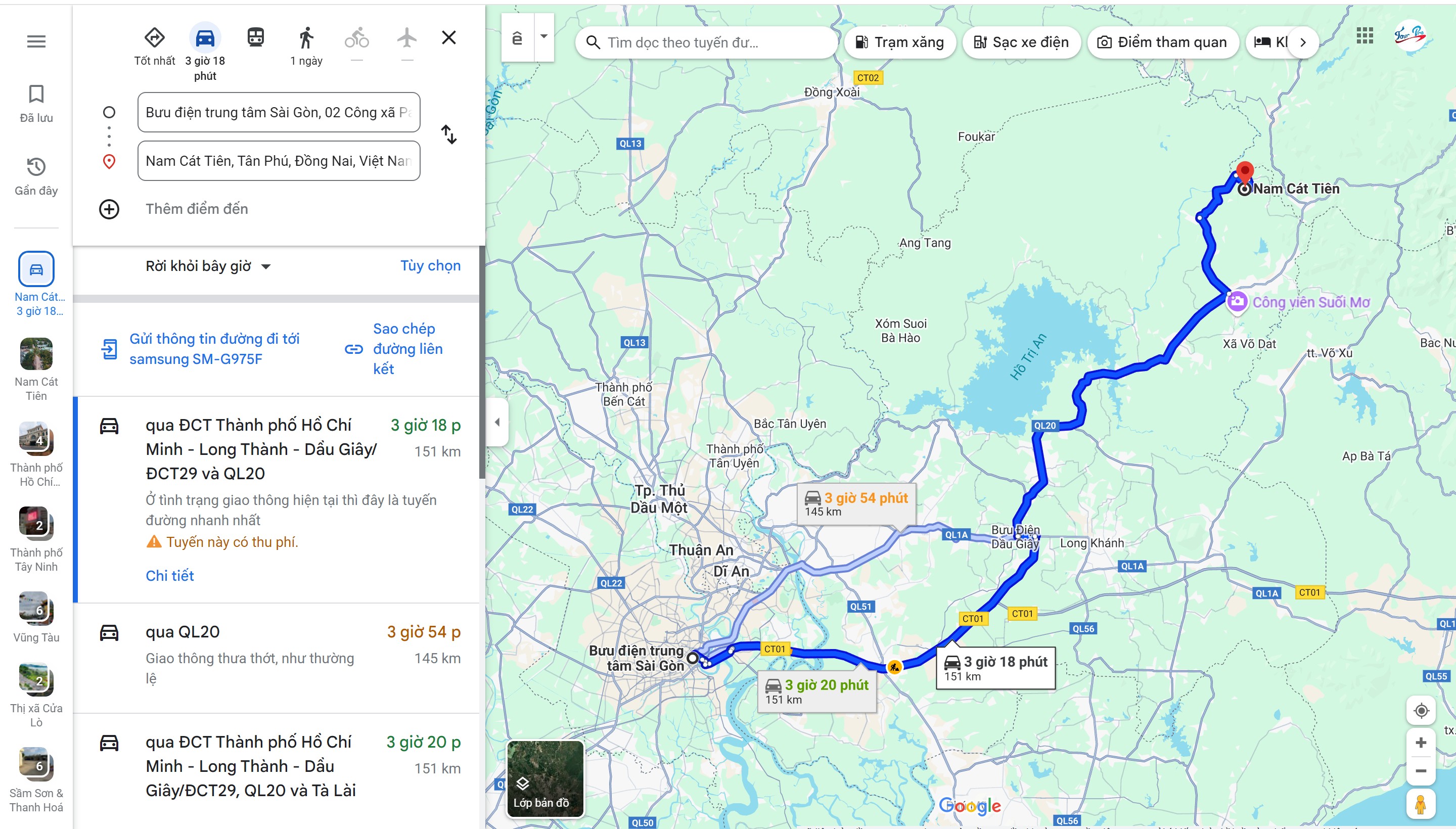 + Đi Nam Cát Tiên bằng phương tiện cá nhân: Đối với những du khách có dự định tự lái xe đến Vườn quốc gia Cát Tiên bằng xe máy, ô tô cá nhân có thể tham khảo ứng dụng Google Maps để hỗ trợ định hướng trong suốt hành trình. Khởi hành từ trung tâm Thành phố Hồ Chí Minh, du khách di chuyển theo quốc lộ 1A với quãng đường khoảng 67km cho đến ngã ba Dầu. Tại ngã ba Dầu, du khách lưu ý rẽ trái và tiếp tục hành trình trên quốc lộ 20. Sau khi di chuyển thêm khoảng 58km, du khách sẽ đến ngã ba Tà Lài, được đánh dấu tại cột mốc cây số 125.Từ đây, du khách rẽ trái và chạy thêm khoảng tần 14km nữa sẽ đến cổng khu du lịch Nam Cát Tiên.