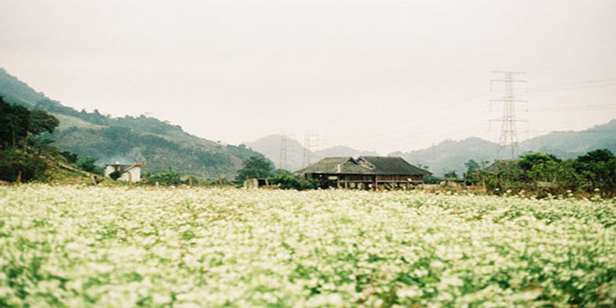 Tháng 11, màu trắng phớt hồng của những cánh hoa tam giác mạch ngút ngàn phủ khắp các thửa ruộng bậc thang, xếp tầng tầng, lớp lớp viền quanh những mái đồi như chiếc váy nhiều tầng của người thiếu nữ. Những bông hoa nhỏ xíu ấy kết thành từng thảm hoa bồng bềnh phủ hồng tim tím các sườn núi để che đi cái gai góc của một vùng “đá nhiều hơn đất”.