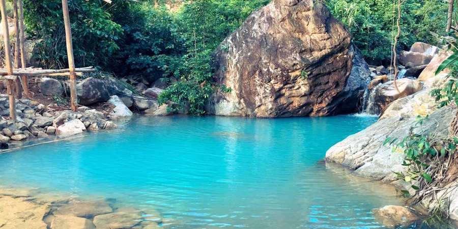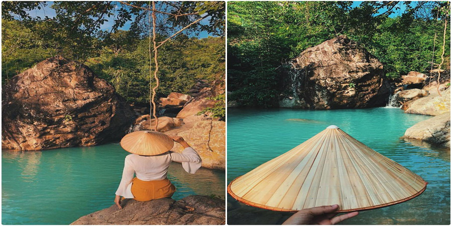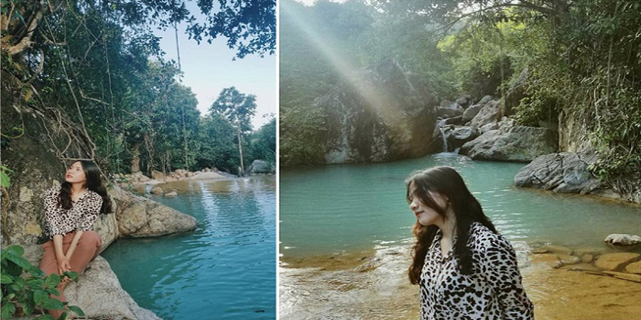 Nằm tận sâu trong núi rừng, mưa và các mạch nước ngầm đã tạo nên một suối nước với màu xanh ngọc bích ảo diệu. Có tới đây rồi mới biết hóa ra ảnh chụp không cần chỉnh sửa gì nhiều mà màu nước vẫn đẹp lung linh, huyền ảo.
