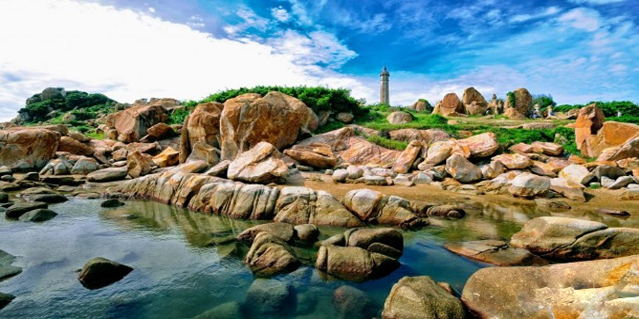 Nếu Phan Thiết nổi tiếng với những bãi biển đẹp, bãi cát dài trắng mịn, thì Mũi Kê Gà lại có thêm những phiến đá kỳ lạ xếp thành đủ hình thù gợi sự hiếu kỳ cho du khách.