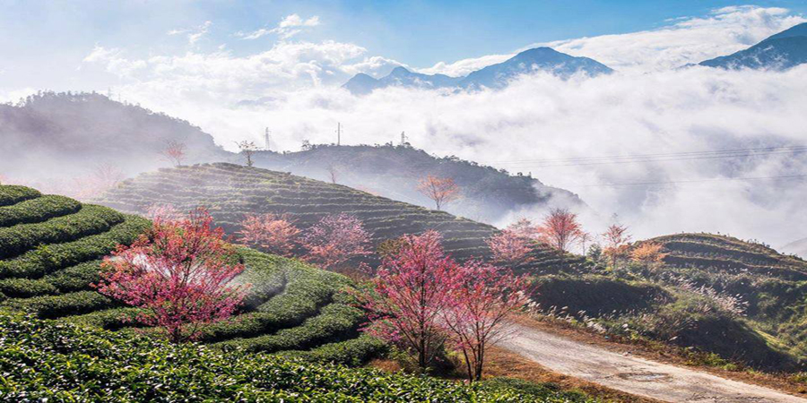 Không cần đến Mộc Châu ngắm đồi chè trái tim, cũng chẳng phải ghé qua đồi chè Long Cốc ở Phú Thọ, đến Sapa thời điểm này, trải dài ngút tầm mắt là đồi chè Ô Long xen lẫn hàng hoa anh đào đẹp đến nao lòng.