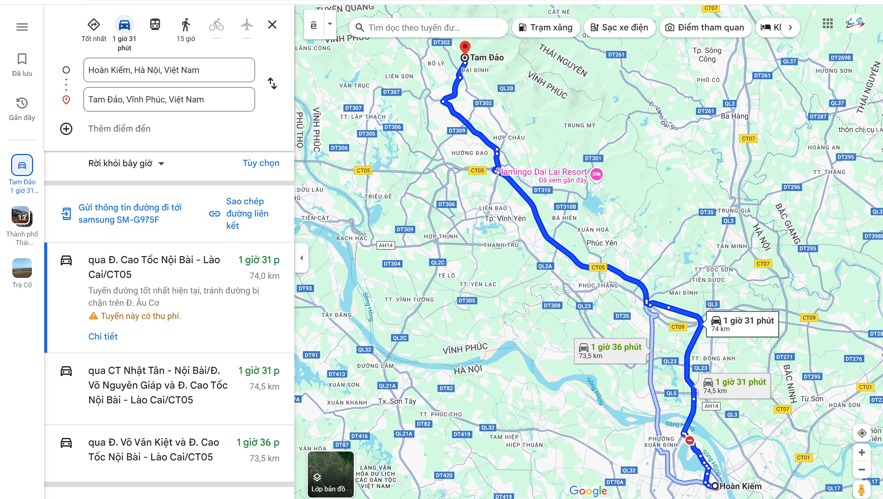 Ngoài ra du khách có thể tham khảo thêm chỉ đường đi từ ứng dụng Google Maps. Bằng cách tải về điện thoại, mở ứng dụng. Sau đó nhập từ khóa “Thị trấn Tam Đảo - Vĩnh Phúc”, lựa chọn thêm phương tiện dự định di chuyển. Bầm tab bắt đầu để được điều hướng theo cung đường thuận tiện nhất nhé.