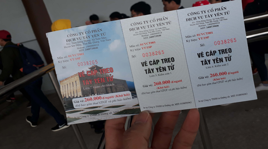 Bên cạnh mua vé cáp treo, du khách lên chùa Đồng từ Tây Yên Tử cần mùa vé tham quan, thắng cảnh: 40.000 VNĐ/Vé.