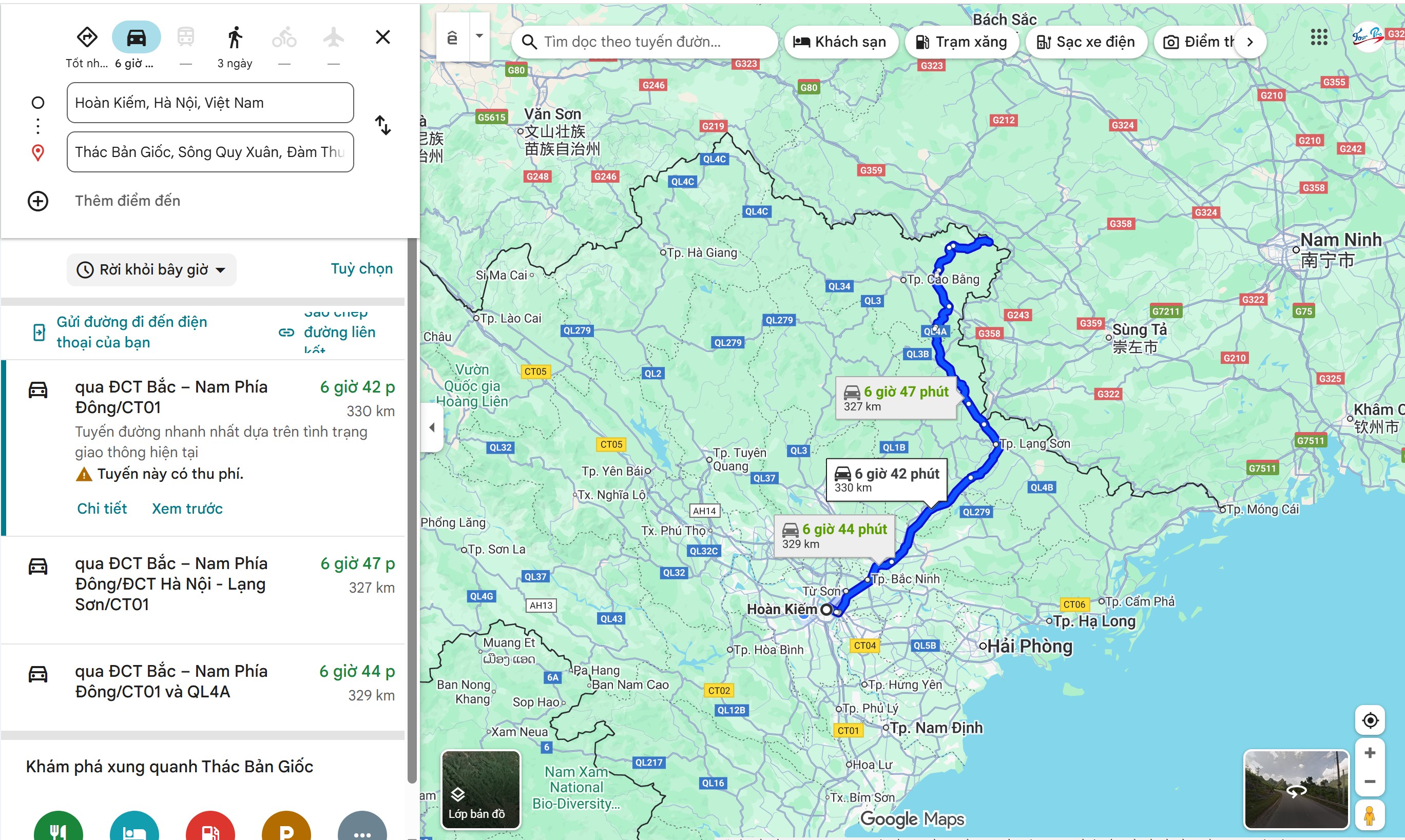 + Thuê xe dịch vụ trọn gói: Đây lựa chọn được nhiều du khách lựa chọn bởi quãng đường từ Hà Nội đến Thác Bản Giốc khá xa và nhiều đèo dốc quanh co. Hình thức này giúp hành trình trở nên thuận tiện, an toàn và thoải mái hơn. Với giá thuê từ 6,5 - 15 triệu đồng cho lịch trình 3 ngày 2 đêm tùy loại xe từ 4 chỗ, 7 chỗ đến 16, 29 hay 45 chỗ. Đây là giải pháp lý tưởng cho nhóm bạn bè, gia đình hoặc đoàn công ty muốn trải nghiệm một chuyến đi trọn vẹn và riêng tư…xem thêm.