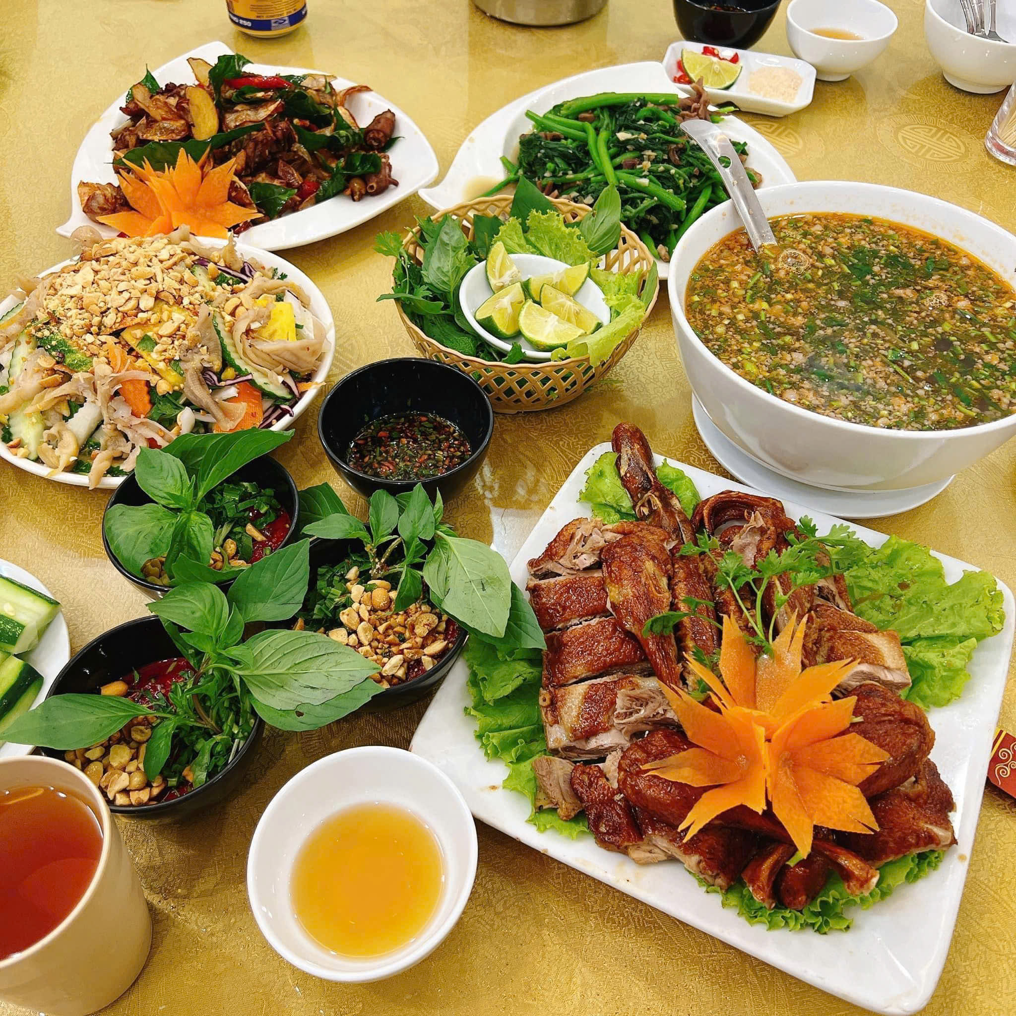 + Vịt quay 7 vị: Được chế biến công phu ướp với nhiều loại gia vị đặc trưng vùng núi mang đến hương vị khác lạ. Thịt vịt khi chín vừa mềm ngọt, da giòn vàng ruộm tỏa mùi thơm quyến rũ khiến thực khách nhớ mãi.