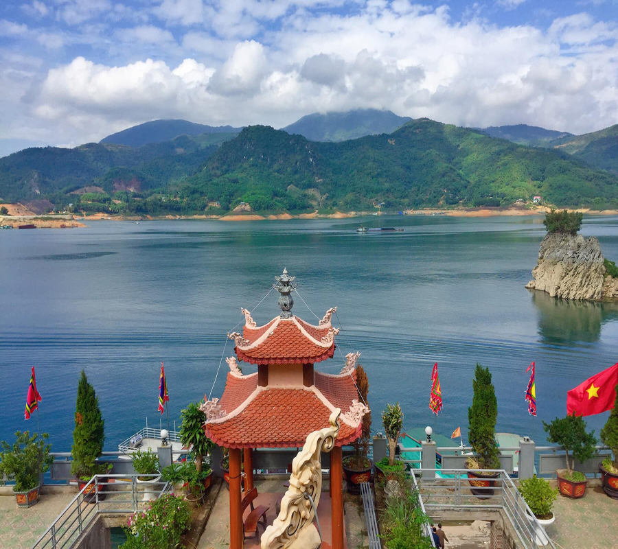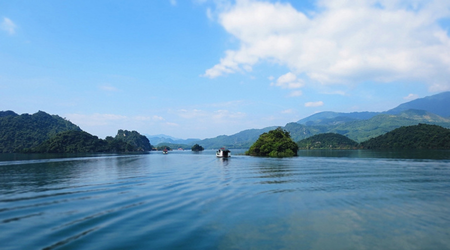 08h40: Đến bến Thung Nai, Quý khách lên thuyền ngắm cảnh hồ thủy điện Hòa Bình - Nơi được ví như vịnh Hạ Long trên cao, với phong cảnh sơn thủy hữu tình, núi rừng thơ mộng hòa trong không gian văn hóa đa sắc màu, nơi đây đã trở thành một điểm đến tham quan nổi tiếng khi đi du lịch Hòa Bình.