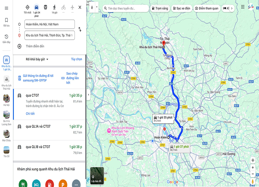 Đối với bất kì loại hình phương tiện nào, cung đường sẽ được chia thành 2 tuyến chính (tính mốc tại trung tâm Hà Nội): bạn cần di chuyển từ Hà Nội đến Thái Nguyên và từ thành phố Thái Nguyên đến Khu du lịch Thái Hải. Với quãng đường khoảng 70km và vặn đều tay ga chừng gần 2 giờ đồng hồ là bạn đã hoàn thành được chặng đường. Sau đây là chỉ dẫn cho bạn khi tự lái xe đến điểm du lịch: