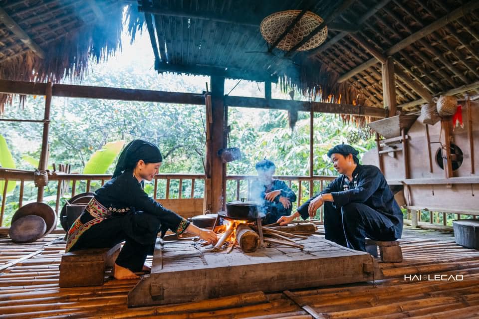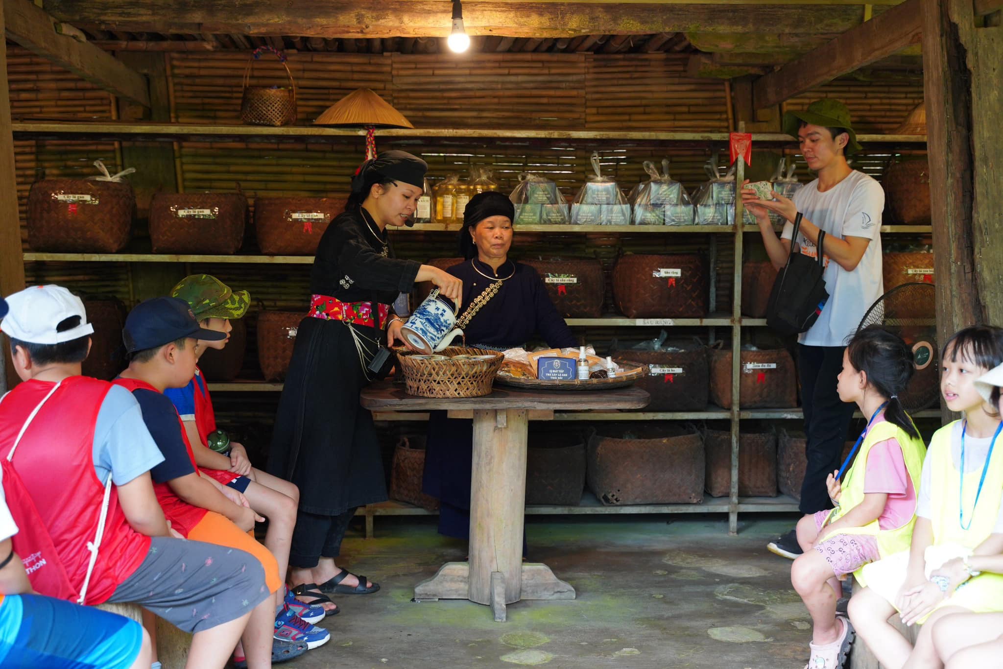 Chiều: Du khách tự do tham quan nhà trưng bày hiện vật, khám phá 30 ngôi nhà sàn cổ, khu làm thuốc, tìm hiểu bản làng…Trải nghiệm làm chè, hái lượm, làm bánh nếp, bánh chè lam, tết dây ngũ sắc,...(Chi phí tự túc nếu có).