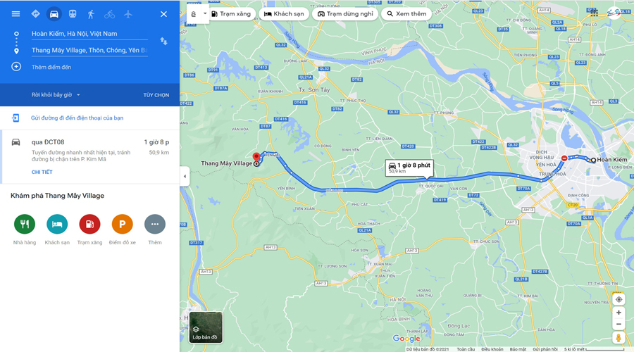 Tọa lại thôn Chóng, xã Yên Bài, huyện Ba Vì, Thang Mây Village nằm cách trung tâm thành phố Hà Nội chỉ 48 km về hướng Tây theo chỉ dẫn của Google Maps. Đường từ khu trung tâm thủ đô đến Thang Mây rất dễ đi bởi hạ tầng giao thông được kết nối khoa học, liền mạch, bạn có thể lựa chọn được đa dạng phương tiện để đi lại nhé: