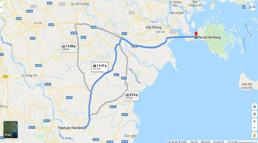 Theo kinh nghiệm du lịch Thái Bình - Cát Bà tại Tour Pro, gợi ý tuyến đường ngắn nhất hiện nay là hướng đi Thái Bình - Phà Gót, Cát Hải - Cát Bà. Tổng quãng đường theo chỉ dẫn Google Maps là 118km + 30 phút di chuyển trên phà Gót, quãng đường bộ sẽ bao gồm hai chặng. Một từ Thái Bình đi Phà Gót và từ bến phà Cái Viềng về thị trấn Cát Bà.