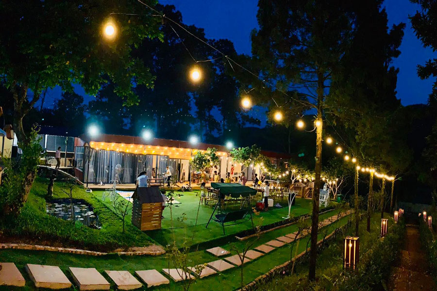 Với 6 phòng ngủ. Trong đó có 4 phòng ngủ khép kín + 2 phòng ngủ tập thể, cùng với đó là hệ thống sân vườn rộng có sức chứa tối đa hơn 40 người sẽ mang đến cho bạn những phút giây thư giãn và trải nghiệm tuyệt vời bên gia đình và người thân. Giá phòng tham khảo: từ 7.500.000đ - 11.500.000đ/khu/40 người/đêm.