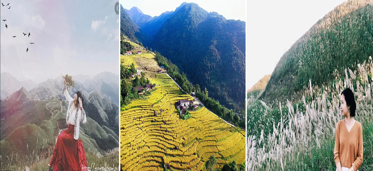 Bình Liêu, mảnh đất của cỏ lau - hoa sở đã khiến biết bao trái tim của “kẻ lữ hành” thổn thức, loạn nhịp khi đứng trước khung cảnh thiên nhiên đẹp như một bức tranh được vẽ lên bởi đôi tay nghệ sĩ tài hoa. Đi trên những bậc thang uốn quanh mềm mại trên những dải núi cao tựa như dải lụa mềm mại vặn mình uốn lượn bên hàng cỏ lau rợp bóng trời.