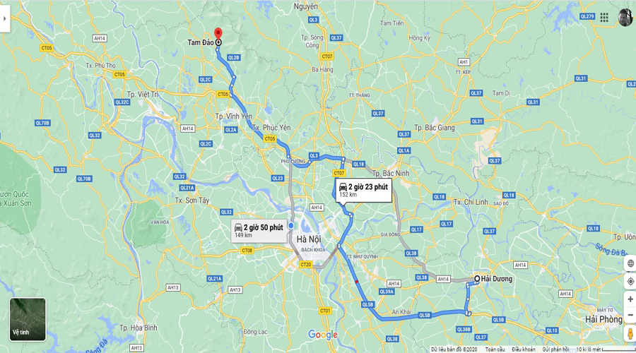 Tuyến đường tốt nhất cho bạn lựa chọn theo hướng dẫn điều hướng Google Maps thì từ TP. Hải Dương đến Thị trấn Tam Đảo có quãng đường 120km, thời gian di chuyển mất 2 giờ 20 phút theo lộ trình như sau: