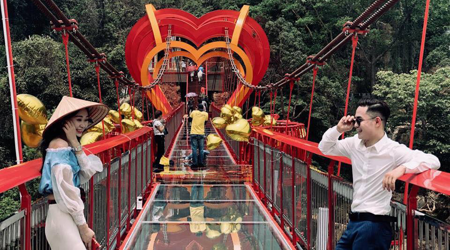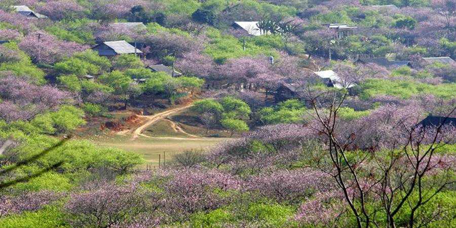 07h30: Hướng dẫn viên đưa du khách đi tham quan khu du lịch Thác Dải Yếm, Cầu Kính Tình Yêu. Check in, chụp hình những vườn hoa Cải, Mơ, Mận, Đào nở rực rỡ vào mùa hoa.