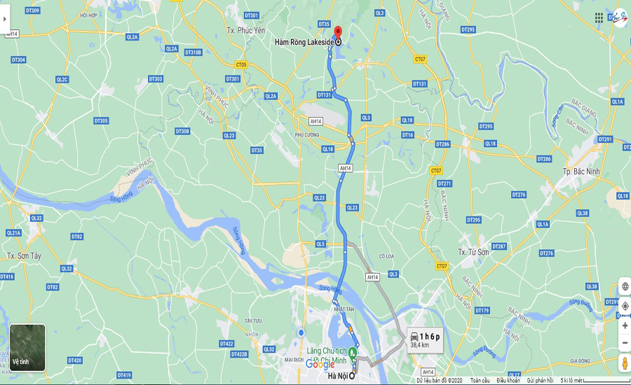 Từ trung tâm thành phố Hà Nội, theo chỉ dẫn Google Maps bạn có thể di chuyển theo hướng Cầu Nhật Tân - Võ Nguyên Giáp - Mai Đình - Đường 35 - Hàm Rồng Lakeside.