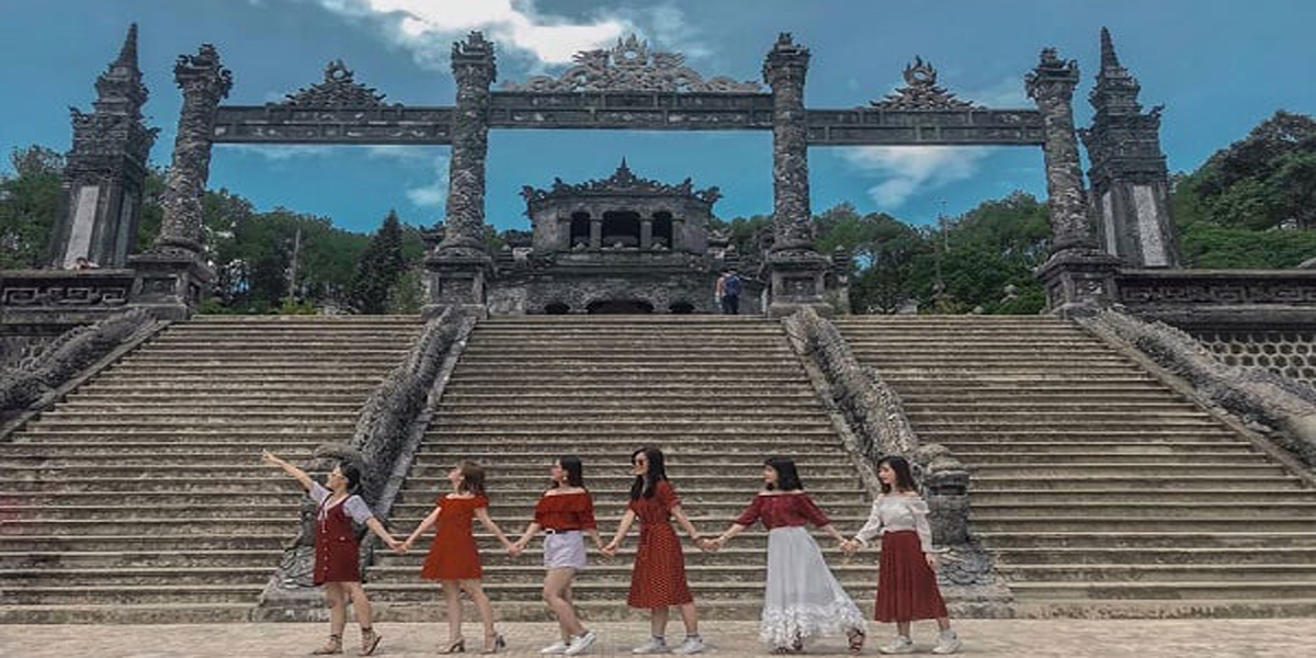 + Lăng Khải Định: Ngay khi vừa lên ngôi, vua Khải Định đã cho xây dựng lăng và mất tới 11 năm để hoàn thành được lăng tẩm của mình. Lăng Khải Định tuy không rộng lớn nhưng toát lên sự xa hoa tráng lệ, kết hợp kiến trúc truyền thống và phương Tây khiến du khách không khỏi choáng ngợp về độ chịu chơi của vị vua thứ 12 triều đại nhà Nguyễn này.