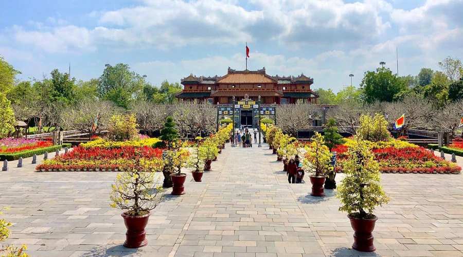 09h00: Quý khách đến TP Huế, Hướng dẫn viên đưa du khách tiếp tục đưa Quý khách đi tham quan Đại Nội - Hoàng Thành Huế nơi gắn liền với lịch sử 13 vị vua triều Nguyễn, Triều đại phong kiến cuối cùng Việt Na. Du khách tham quan, nghe thuyết minh tại các khu vực tiêu biểu: Ngọ Môn, Điện Thái Hoà, Tử Cấm Thành, Thế Miếu, Hiển Lâm Các, Cửu Đỉnh…