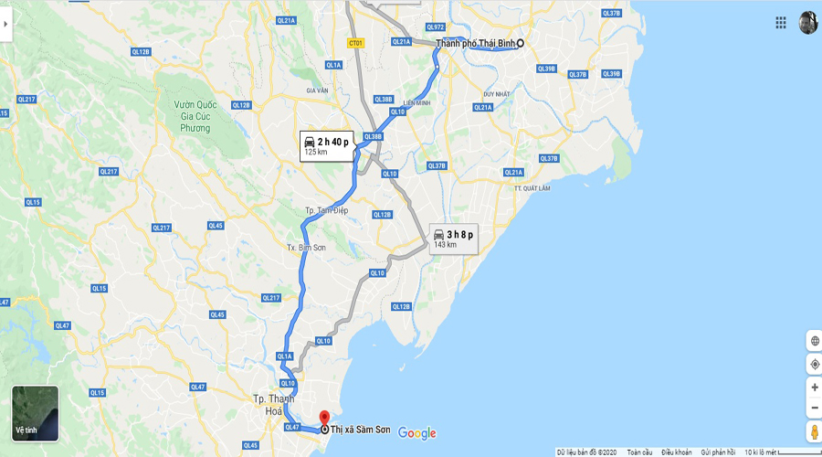 + Đi Sầm Sơn từ Thái Bình bằng xe máy, ô tô cá nhân: Du khách tải ứng dụng Google Maps từ Google Play hoặc App Store về điện thoại, nhập ô tìm kiếm từ khóa "Sầm Sơn - Thanh Hóa" sau đó nhấp lựa chọn phương tiện mà bạn dự định di chuyển, bấm tiếp bắt đầu để được điều hướng theo tuyến đường phù hợp nhé.