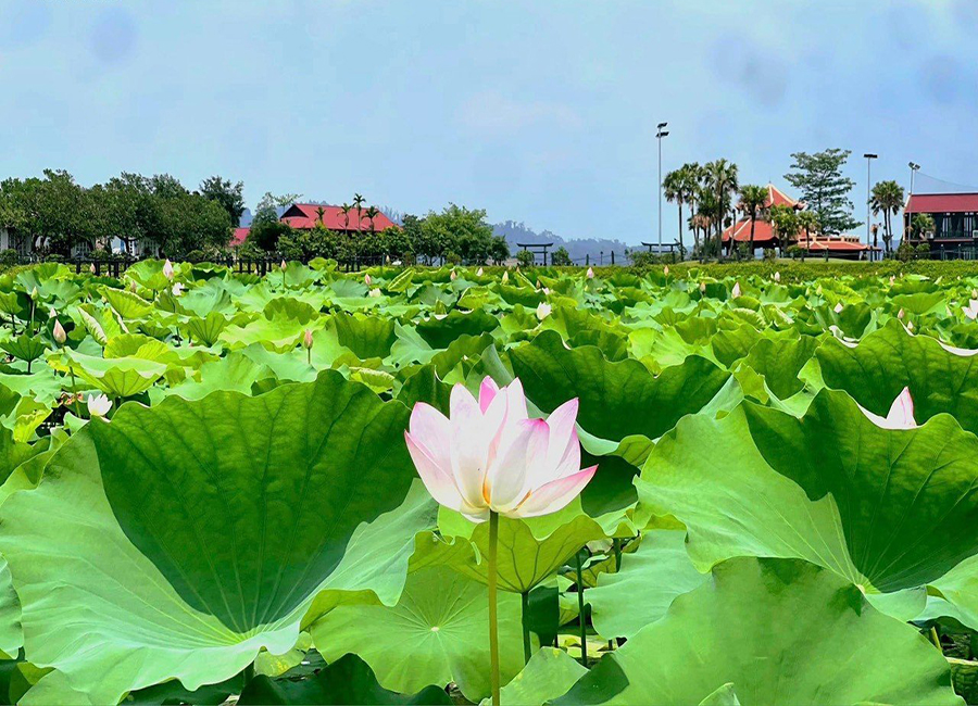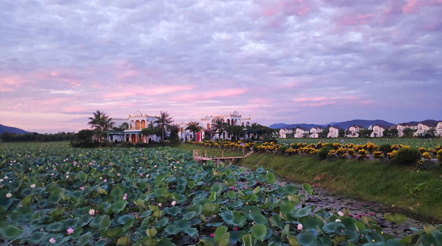 Vườn Vua Resort được xây dựng hòa hợp với thiên nhiên, hồ sen với diện tích rộng lớn ngày ngày tỏa hương thơm dịu nhẹ, thoang thoảng đầy dễ chịu. Bạn tản bộ trên những con đường xinh xắn được phủ bóng mát của cây cối xanh tươi, hít thở bầu không khí thanh mát, đâu đó phảng phất hương sen nhẹ nhàng mà quyến rũ.