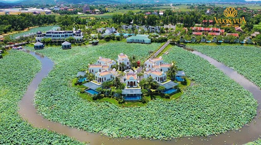 Vườn Vua Resort sở hữu không gian thân thiện với thiên nhiên, bầu không khí trong lành mát mẻ, kèm với đó là hương sen thoang thoảng nhẹ nhàng đầy lôi cuốn giúp cho bạn cảm thấy thư thái khi đến đây. Bên cạnh đó, dịch vụ chăm sóc hết sức chu đáo cùng những kiến trúc nhà nghỉ đa dạng, tiện nghi mang đến những giây phút nghỉ ngơi sảng khoái, khó quên được đối với bạn.