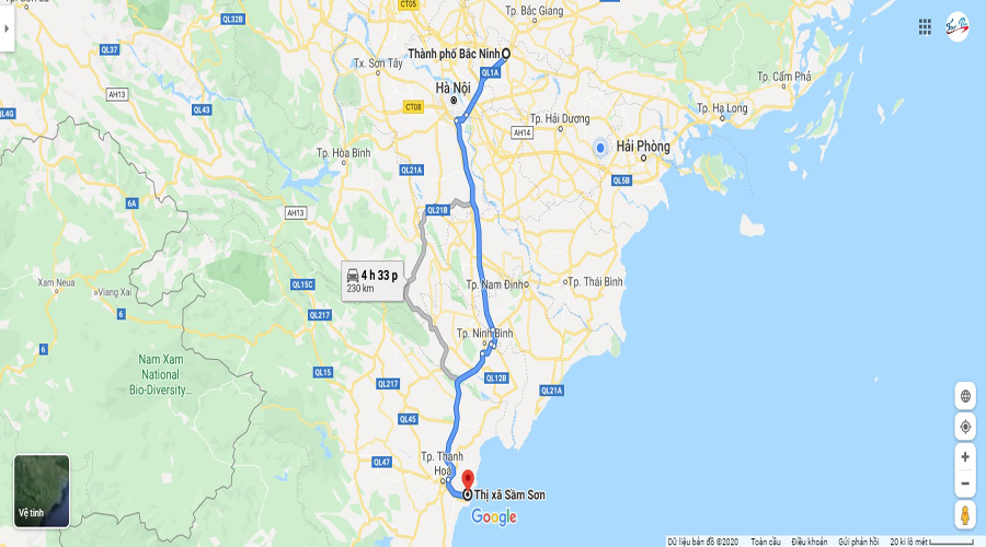 Biển Sầm Sơn nằm cách TP. Bắc Ninh 198km theo tuyến đường ngắn nhất gợi ý từ Google Maps. Thời gian di chuyển bằng ô tô mất khoảng 3h16 phút, từ Bắc Ninh du lịch đến Sầm Sơn tốt nhất bạn nên di chuyển bằng ô tô.