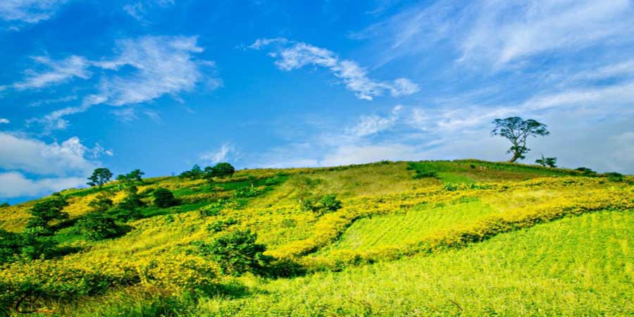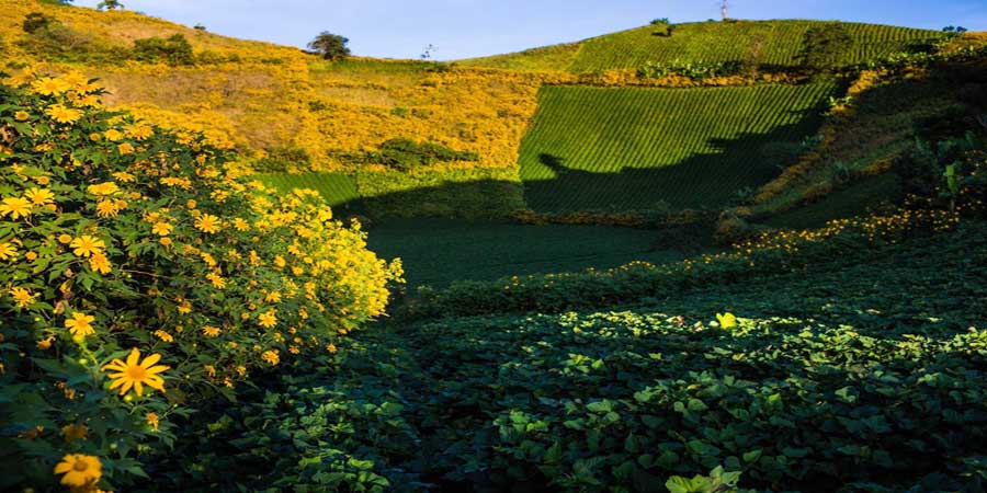 Hoa mọc hai bên đường, trên các lối đi, ven hồ, ven suối, khoe sắc trên sườn núi tạo thành những thảm vàng trải dài đến vô tận. Thời điểm này cũng là thời điểm nơi đây đẹp nhất, thu hút rất nhiều bạn trẻ, đặc biệt là dân phượt đến với vùng núi tuyệt đẹp này để tham quan, khám phá và trải nghiệm.