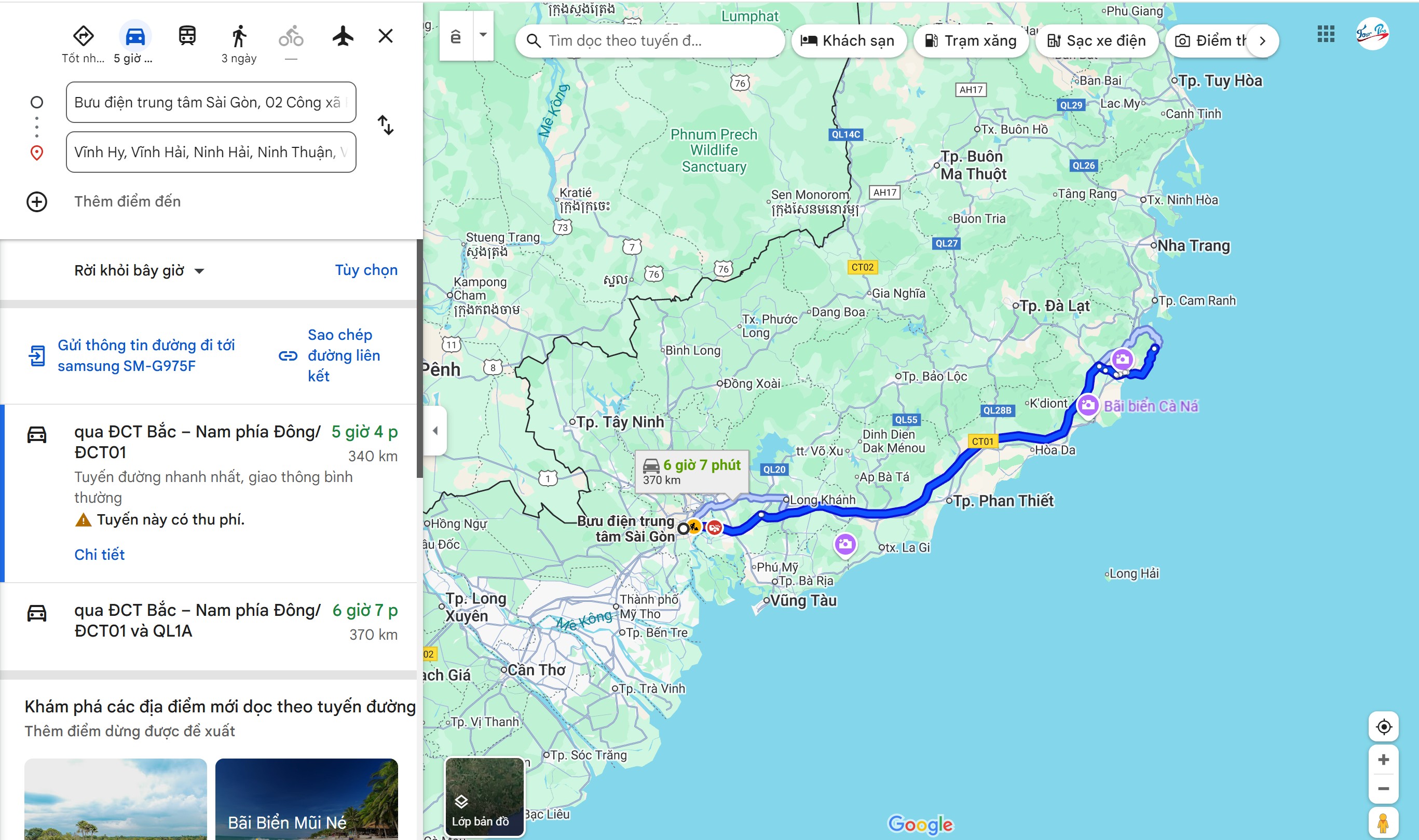+ Di chuyển bằng xe khách: Hiện nay trên địa bàn thành phố Hồ Chí Minh có rất nhiều hãng xe khác nhau chạy tuyến Sài Gòn - Ninh Thuận như nhà xe Quốc Trung, Quê Hương, Anh Khôi, Phước Thiện,... Với mức giá dao động từ 120.000 VND - 250.000 VND/Vé dành cho ghế ngồi và 300.000 VND - 450.000VND/Vé đối với giường nằm. Tuy nhiên, loại phương tiện này sẽ phù hợp nhất đối với du khách có sức đề kháng tốt, không có dấu hiệu say xe trong suốt quá trình di chuyển.