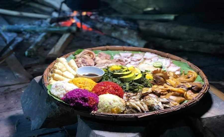 Trưa: Du khách nghỉ chân dùng cơm trưa tại khu vực Bản Dù, thưởng thức các món ăn đặc trưng hương vị vùng đất Phú Thọ.